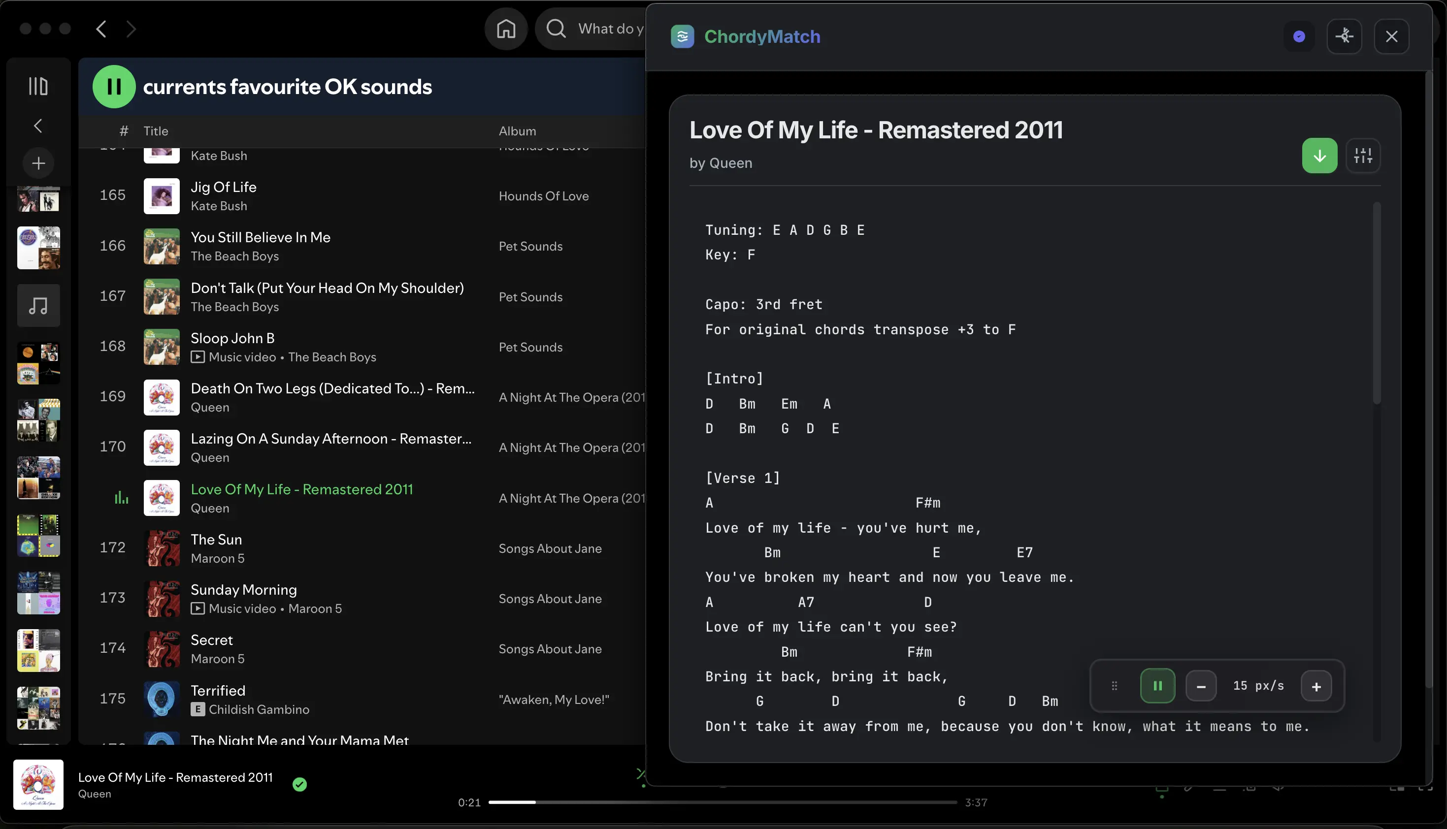 Click your menu bar. Your current song's chords appear in 1 second. That's it.